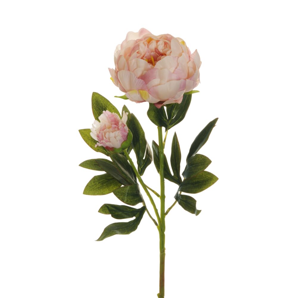 PEONIA RAMO X2 1 FIORE E 1 BOCCIOLO APERTO 66CM rosa-crema (Cod. 25470-03)