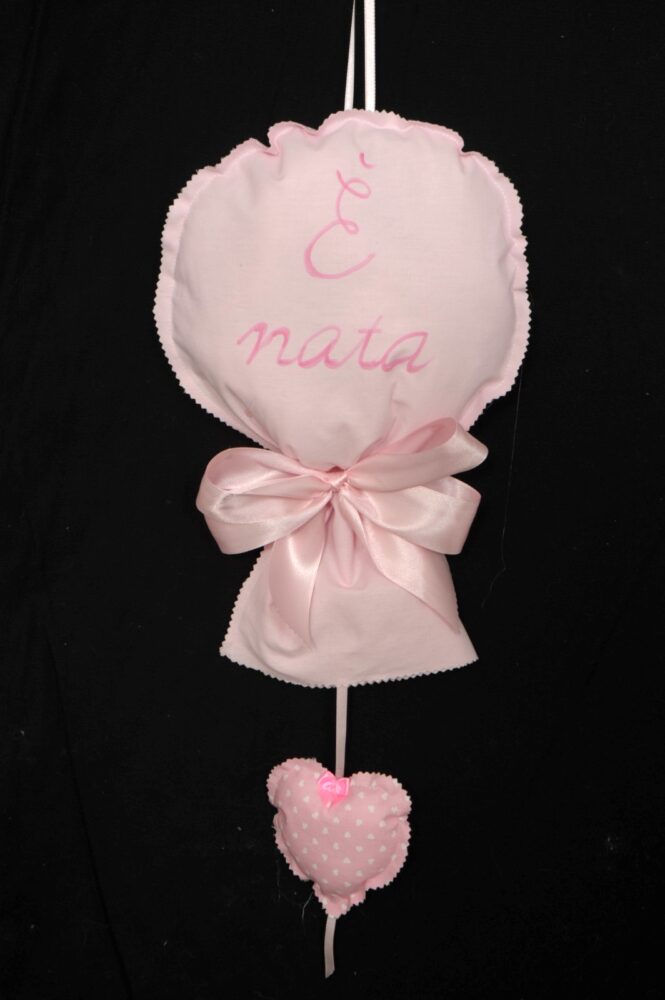 FIOCCO NASCITA ARTIGIANALE IN TESSUTO “E’ NATO/A” rosa (Cod. 33863-02)