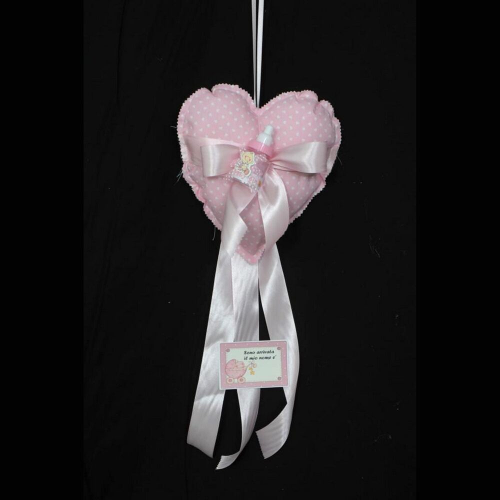 FIOCCO NASCITA ARTIGIANALE IN TESSUTO CUORE C/BIBERON rosa (Cod. 34138-02)