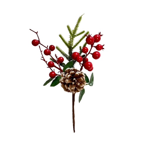 12 PZ. CHRISTMAS PICK MELOGRANO E PIGNE 21 CM rosso (Cod. 38952-01)