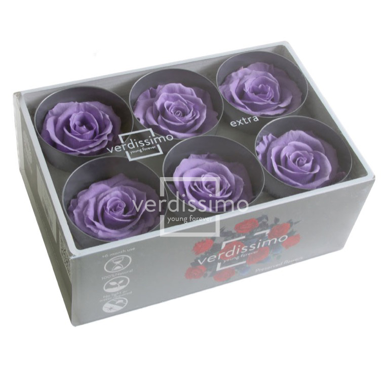 BOX TESTE DI ROSA D 6-6,5CM STABILIZ. PZ.6 lilla (Cod. 8330-27)